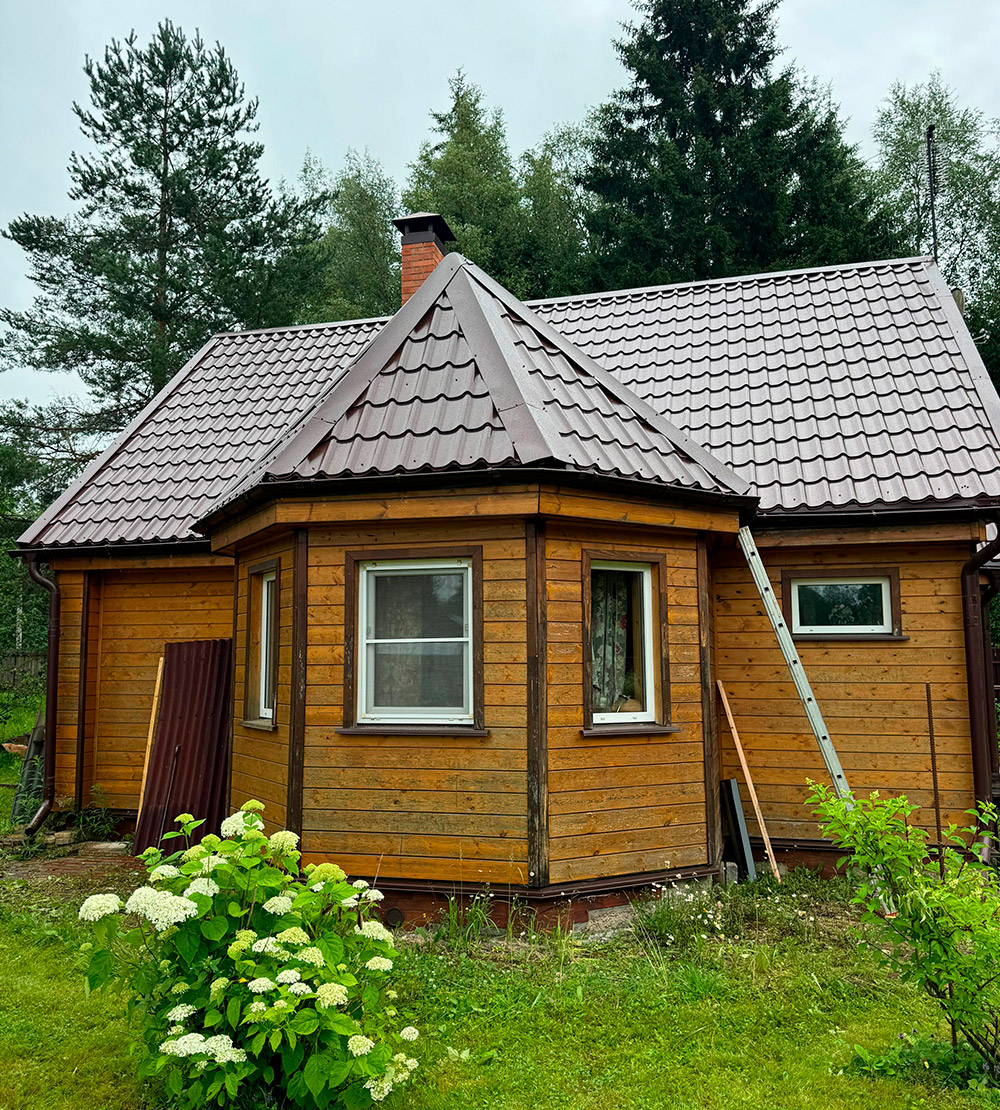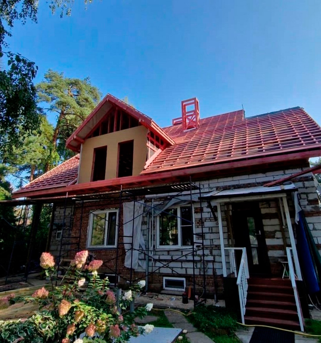 - Замена кровельного покрытия: на металлочерепицу или мягкую, профнастил, ондулин;